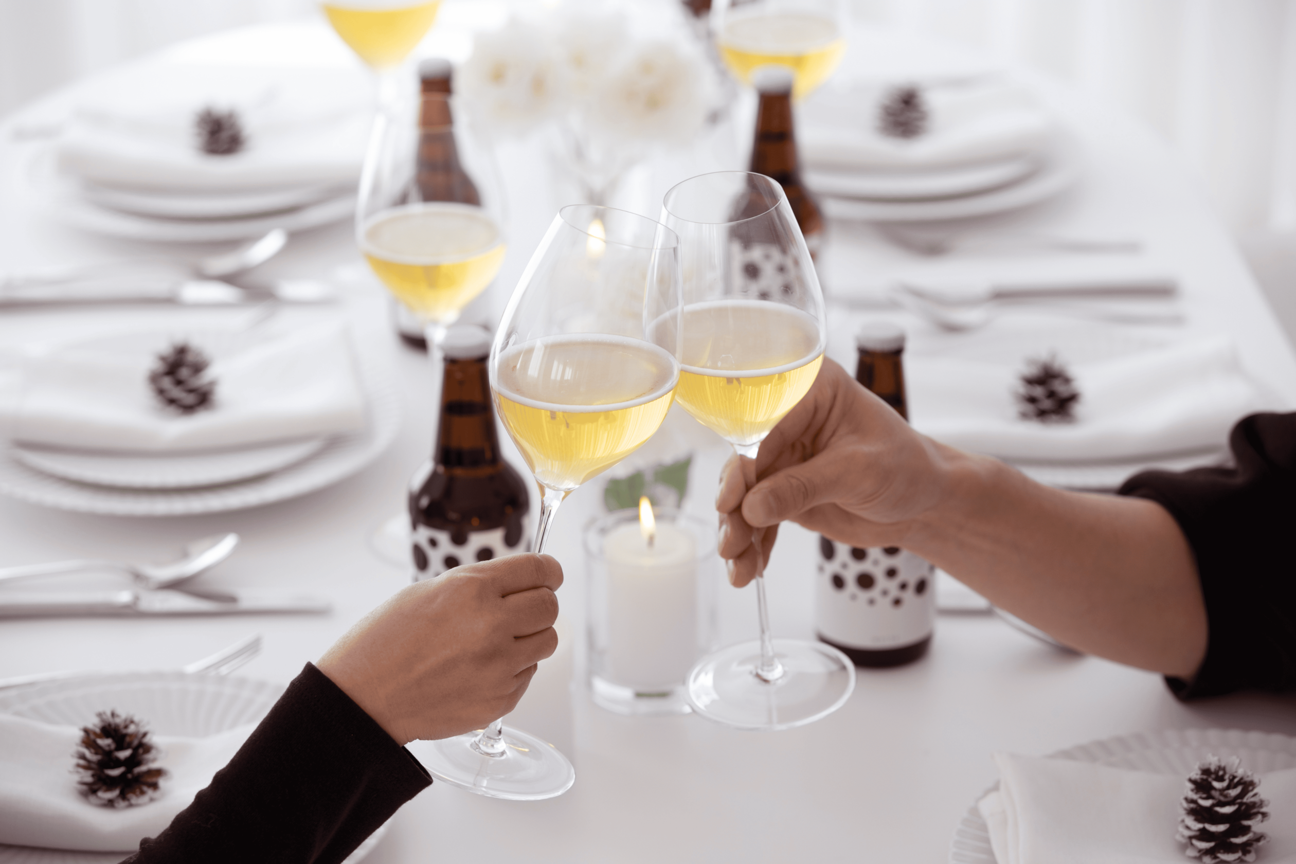 ステム(脚)付きの白ワイングラスを使うことで冷たい温度を保ち、