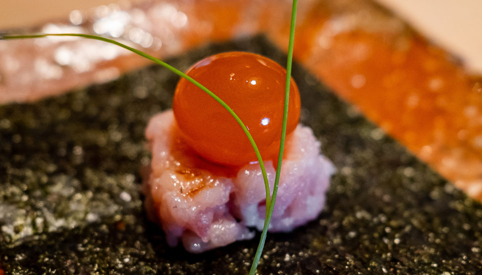コースに必ず登場する「鮪」と「雲丹」もまた、こだわり。中でもマグロは絶対的な信頼関係を持つ名店御用達のマグロ専門仲卸「やま幸」で、